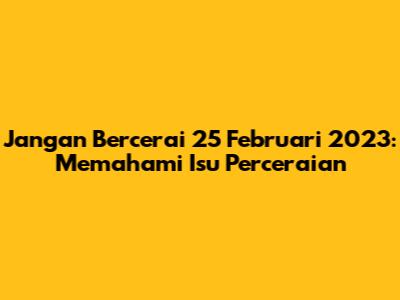 Jangan Bercerai 25 Februari 2023 adalah sebuah pengingat penting yang mengingatkan kita akan komitmen terhadap pernikahan dan pentingnya menghindari perceraian. Guys, perceraian adalah keputusan besar yang berdampak besar pada kehidupan seseorang, keluarga, dan masyarakat. Tanggal tersebut menjadi titik fokus untuk merenungkan nilai-nilai pernikahan, tantangan yang mungkin dihadapi, dan upaya yang dapat dilakukan untuk menjaga keutuhan rumah tangga. Dalam artikel ini, kita akan menjelajahi berbagai aspek terkait perceraian, mulai dari penyebabnya hingga solusi untuk memperkuat hubungan. Mari kita bahas secara mendalam, yuk!